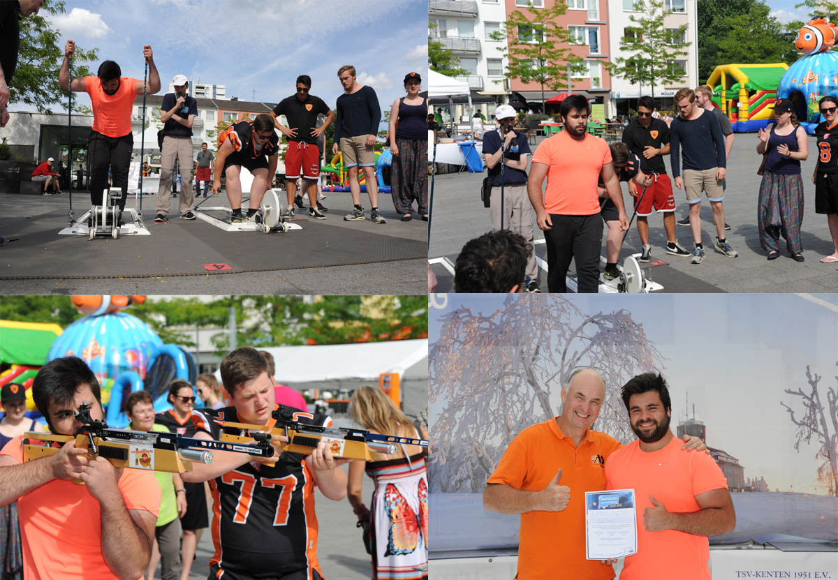 Eine herzliche Verbindung besteht zwischen dem Team der Biathlon auf Schalke-Tour und den Sportschützen des TSV Kenten. Auf der 5. Etappe im April in Bergheim unterstützte uns das junge Schützenteam um Trainer Patrick Neuhaus bei der Betreuung der zahlreichen Neugierigen. Patrick wurde sogar Etappensieger. Der Funke sprang über, nicht nur bei Patrick und dem damaligen Etappenzweiten Safa Ergin, sondern auch bei den beiden Präzisionsschützen Susan Ezzati und Nils Daubner.Zu viert kommt das Team zur Etappe nach Rodenkirchen, um uns erneut zu unterstützen. Wir freuen uns besonders darüber, dass wir mit den 4 Kentenern nicht nur sehr gute Schützen als Betreuer gewinnen konnten, sondern zugleich auch eine lebendige Sportschützengemeinschaft, die den Weg der Nachwuchsförderung bereits erfolgreich beschreitet, den auch wir mit der Biathlon auf Schalke-Tour fördern möchten. Herzlichen Dank, liebes Team vom TSV Kenten. Ihr seid super.