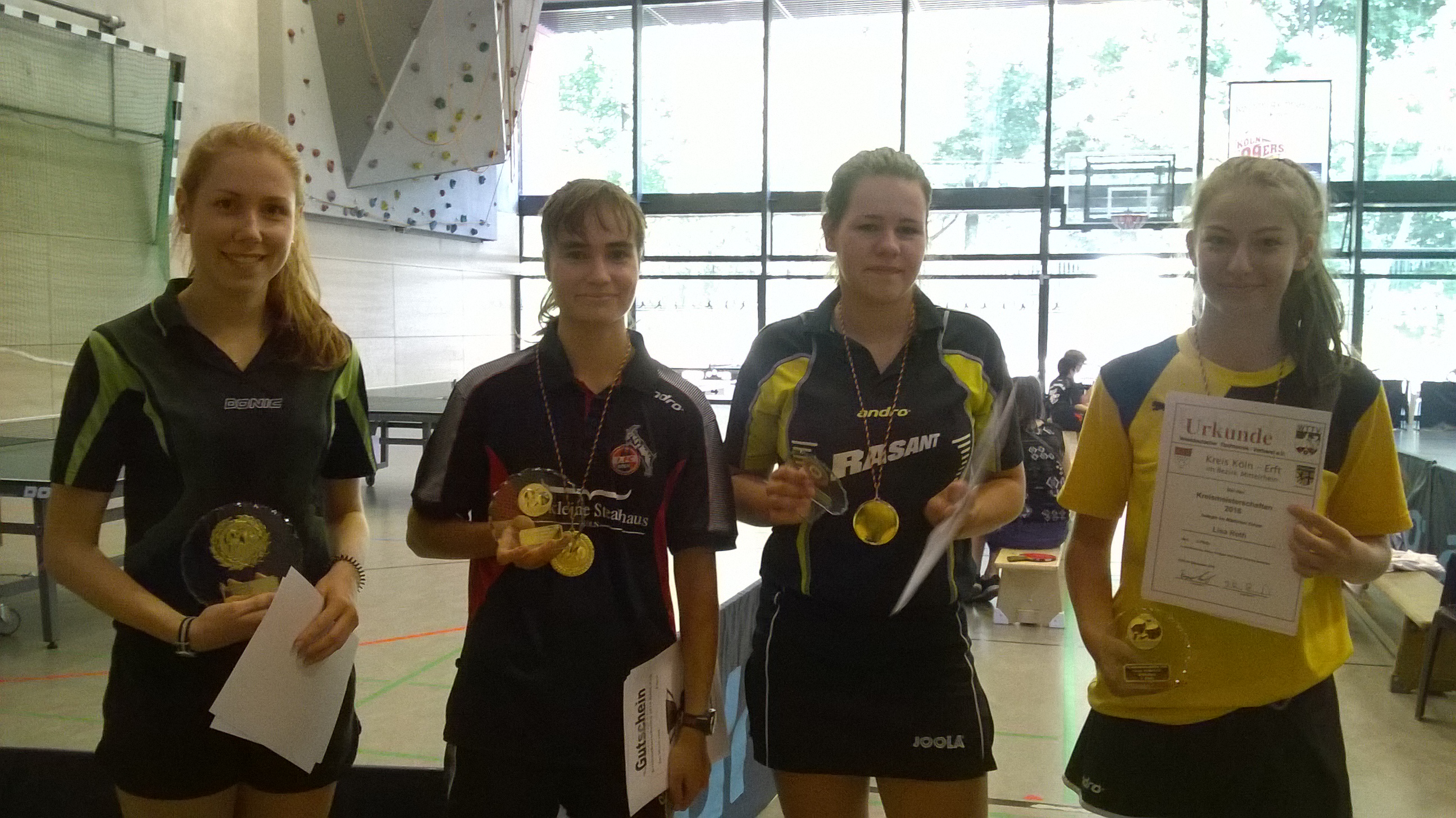 Anissa belegte Platz 3 im C – Schülerinnen Einzel und Bambini Einzel. Zudem schaffte sie es mit ihrer Doppelpartnerin Louisa aus Langenich den Titel im C –Schülerinnen Doppel einzufahren.